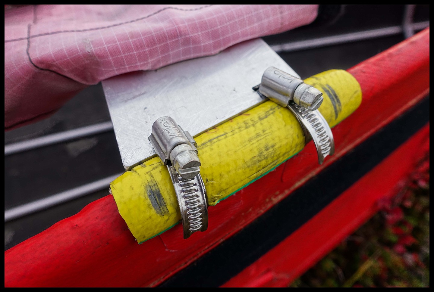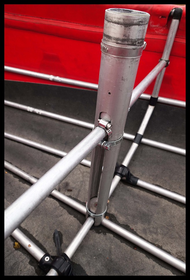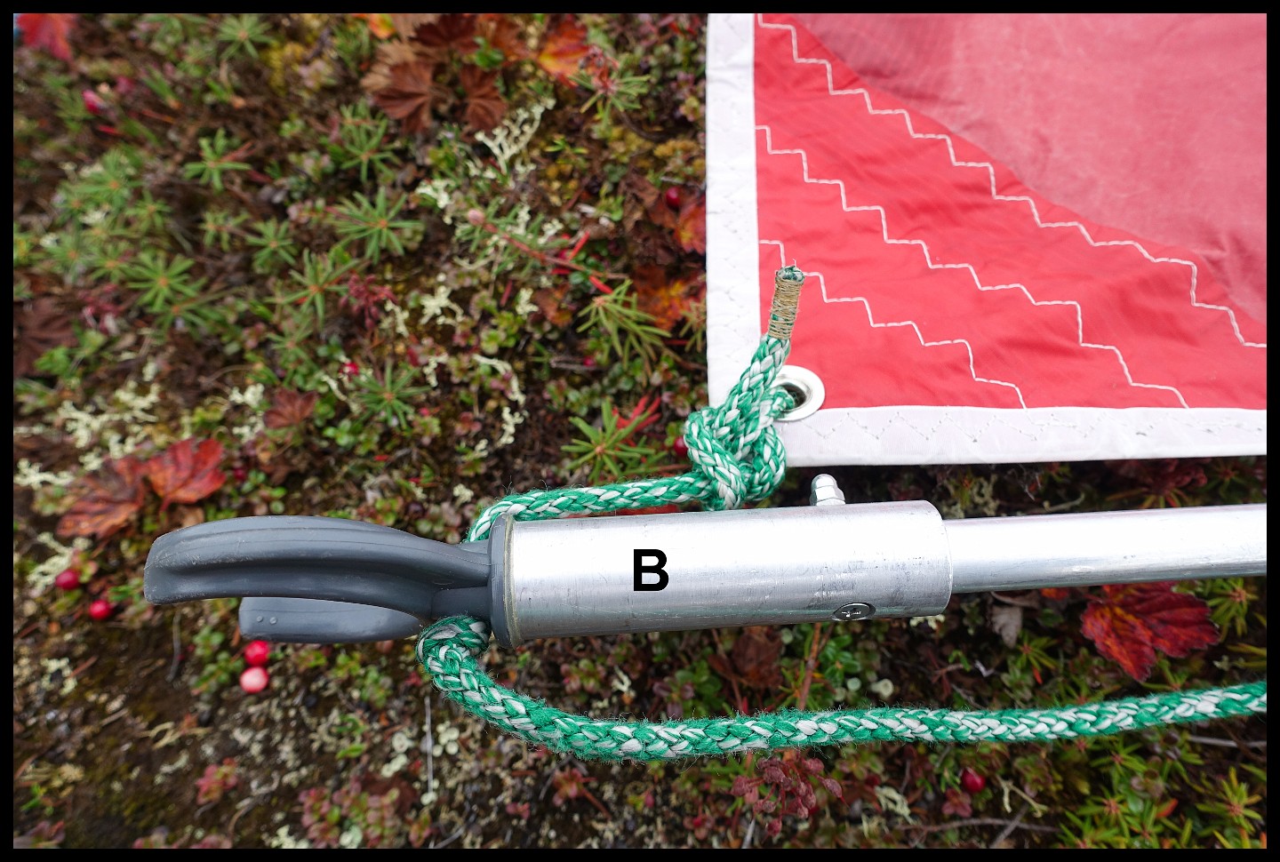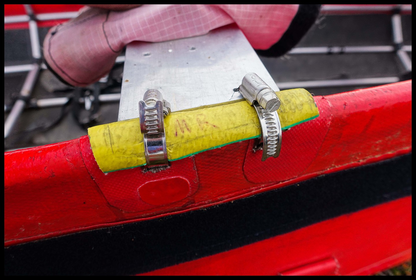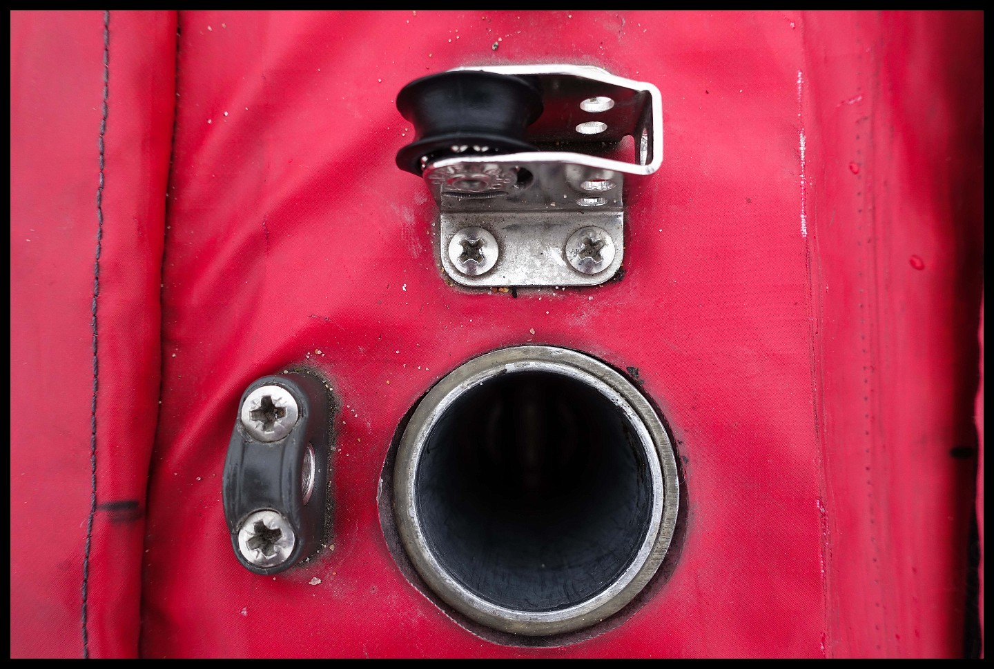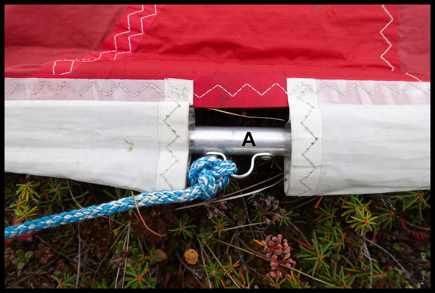 The Ally gunnels (AD 16 mm + ID 13.7 mm) used as the boom is not rigid enough in strong winds. A 70 cm sleeve (AD 19.5 mm + ID 16.6 mm) will reinforce things sufficiently - if positioned properly, like closer to the mast.