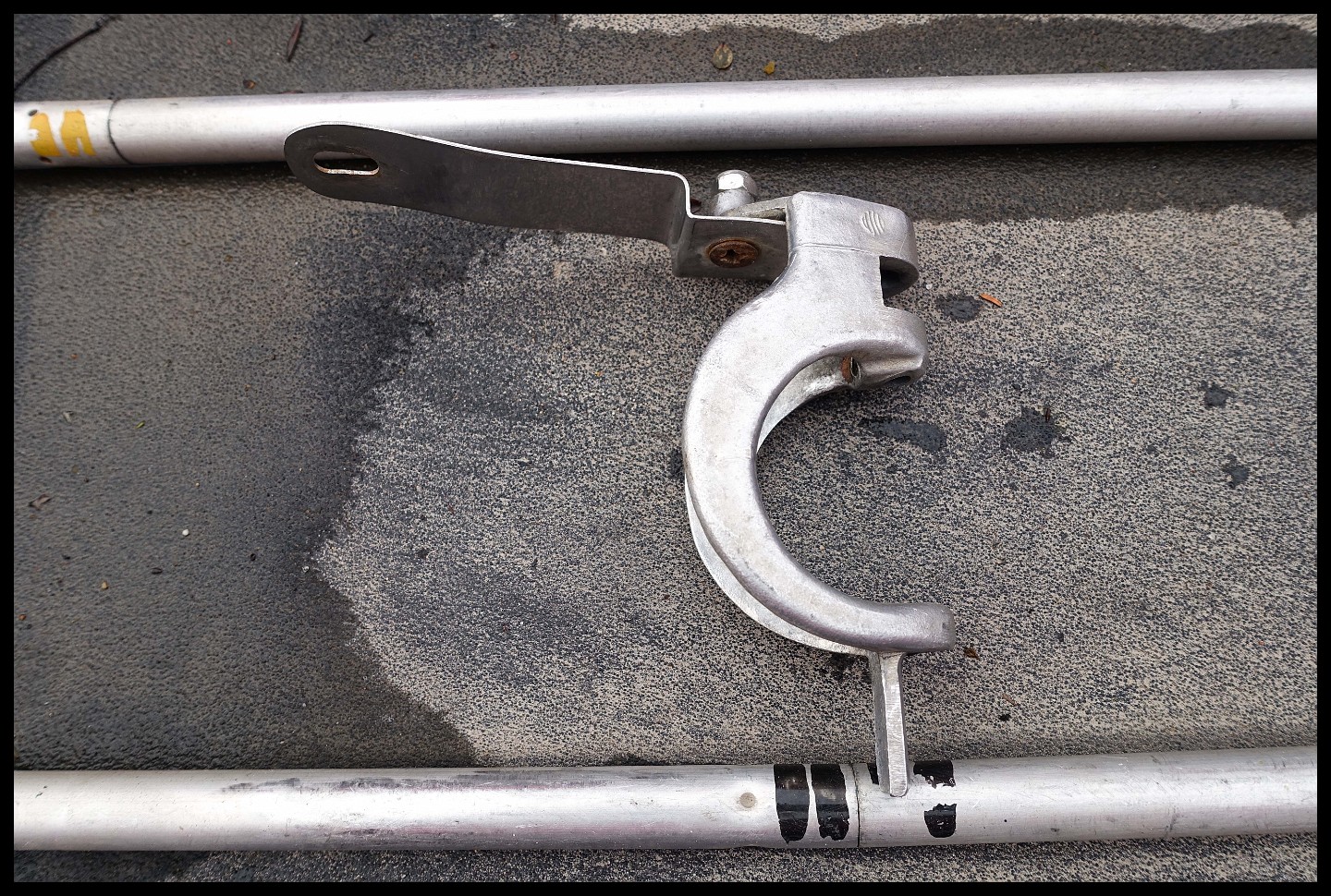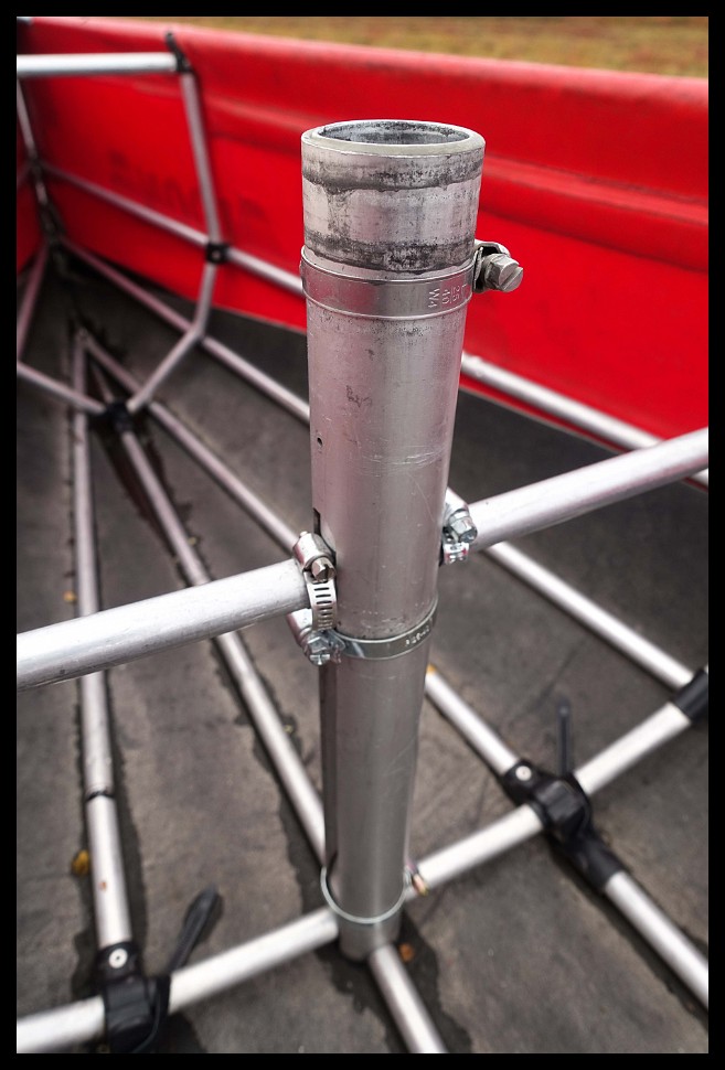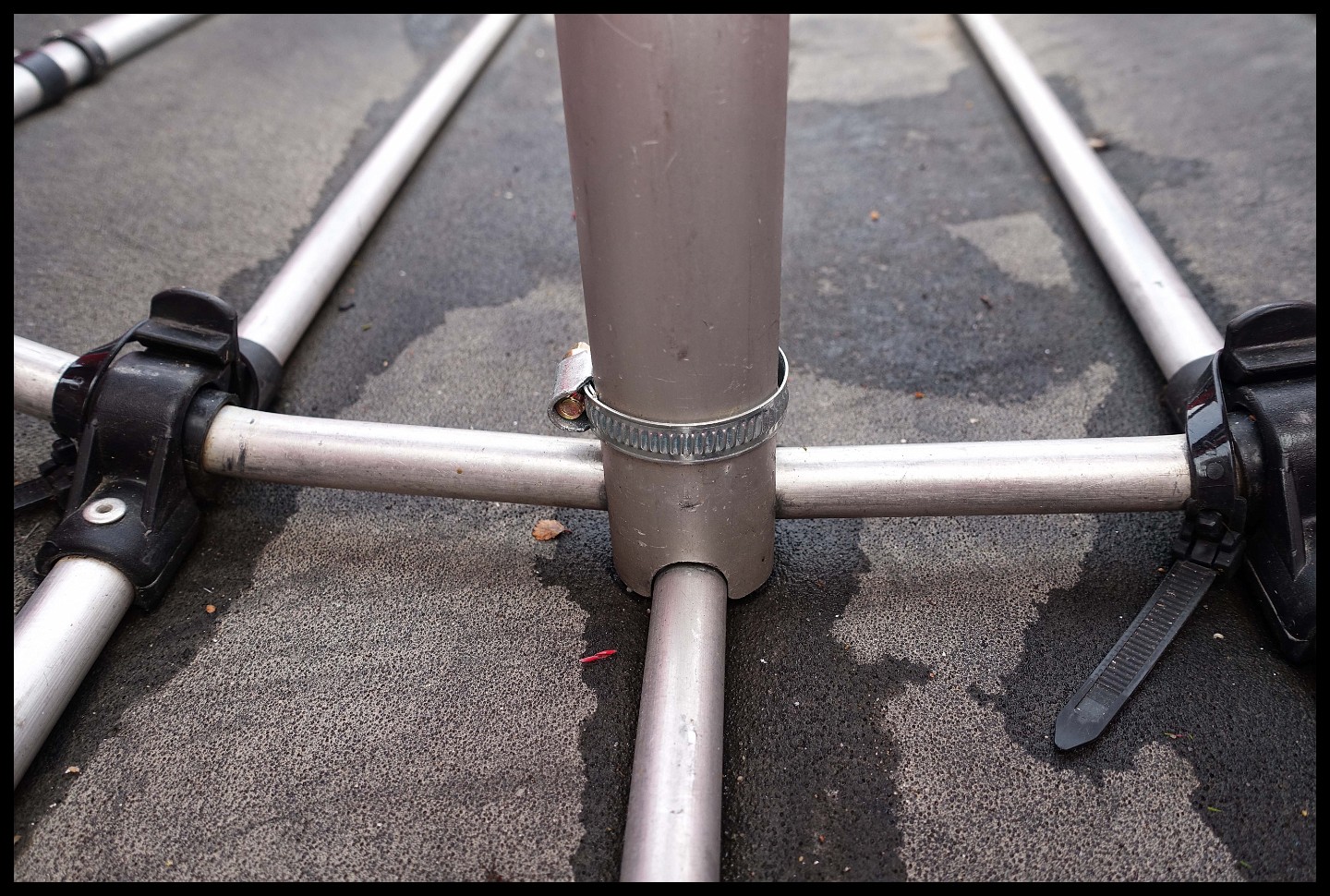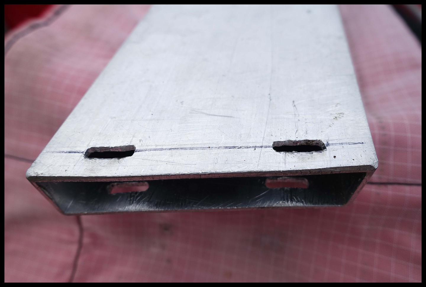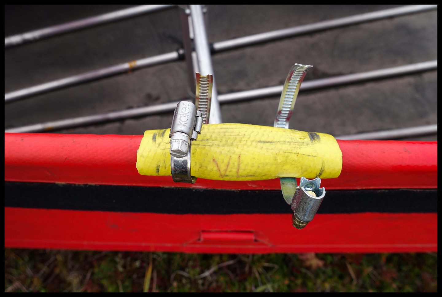 The Ally gunnels (AD 16 mm + ID 13.7 mm) used as the boom is not rigid enough in strong winds. A 70 cm sleeve (AD 19.5 mm + ID 16.6 mm) will reinforce things sufficiently - if positioned properly, like closer to the mast.