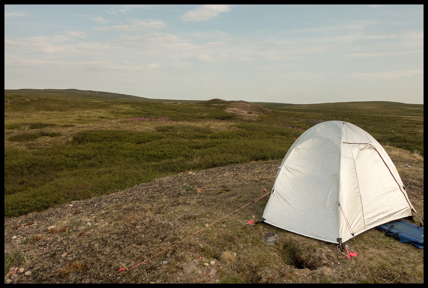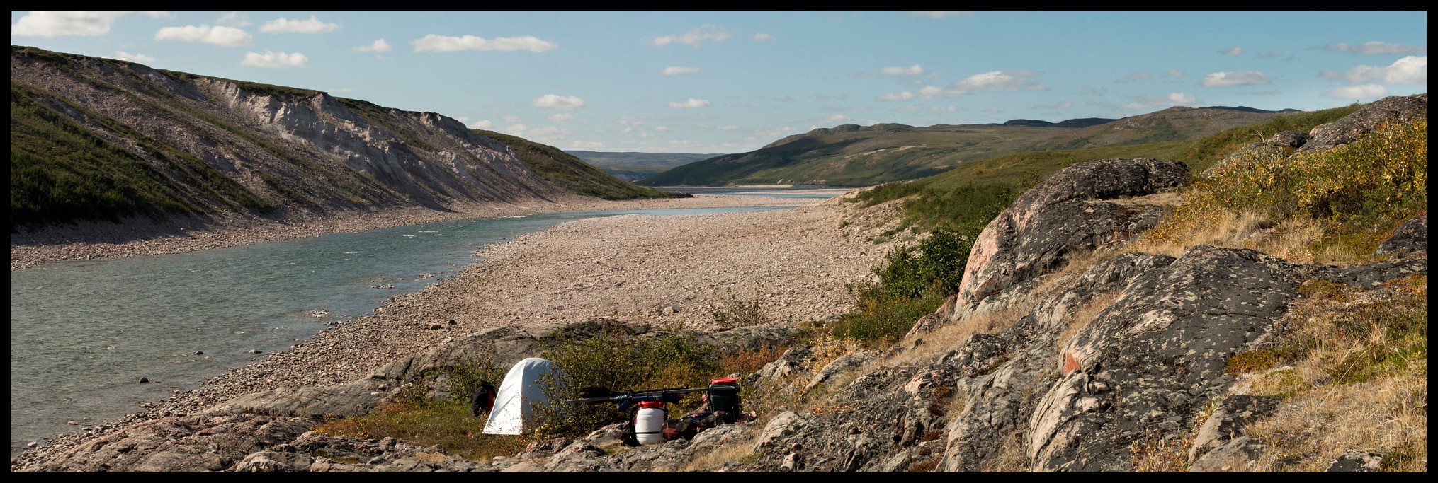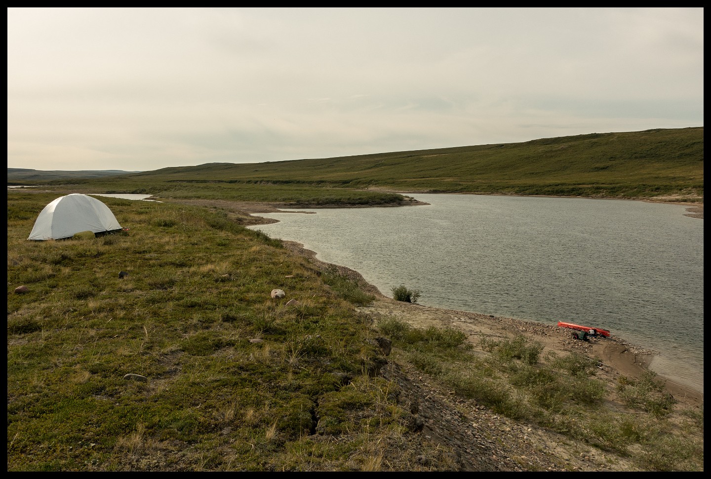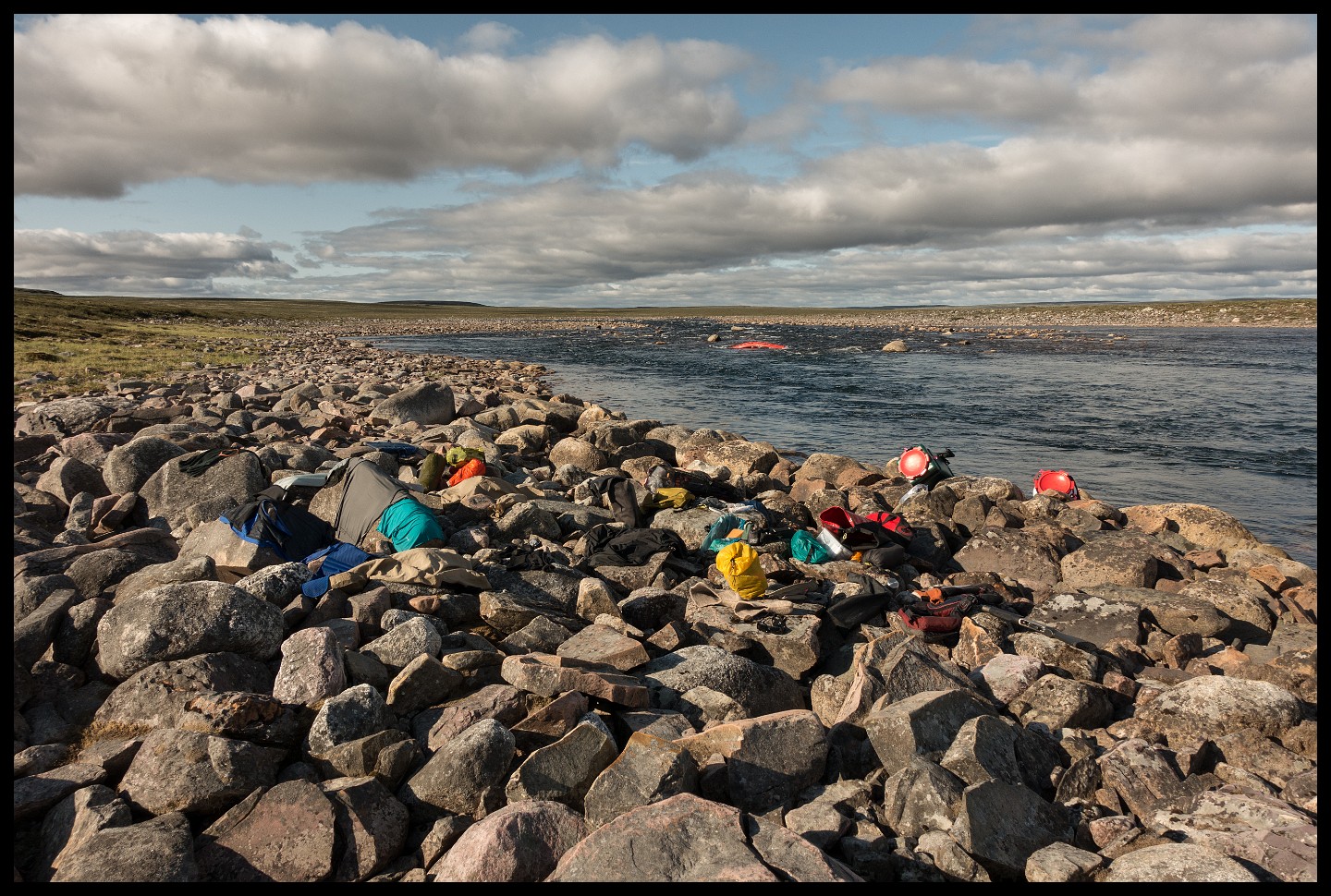 At the confluence of Burnside and Mara. The Mara River comming in from the left (behind the esker), the Burnside joining in from the right. And, the only reasonable campsite for quite a while.