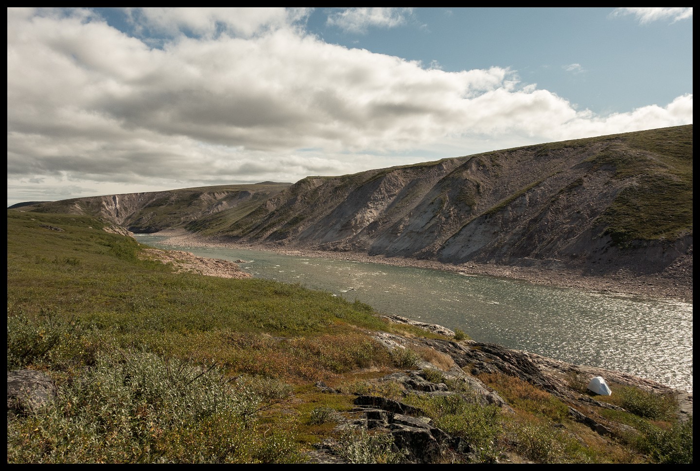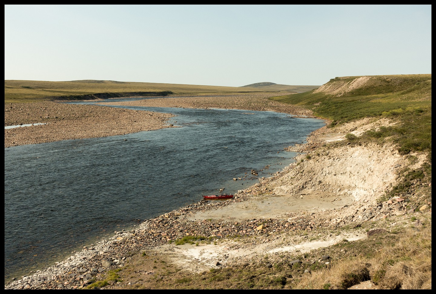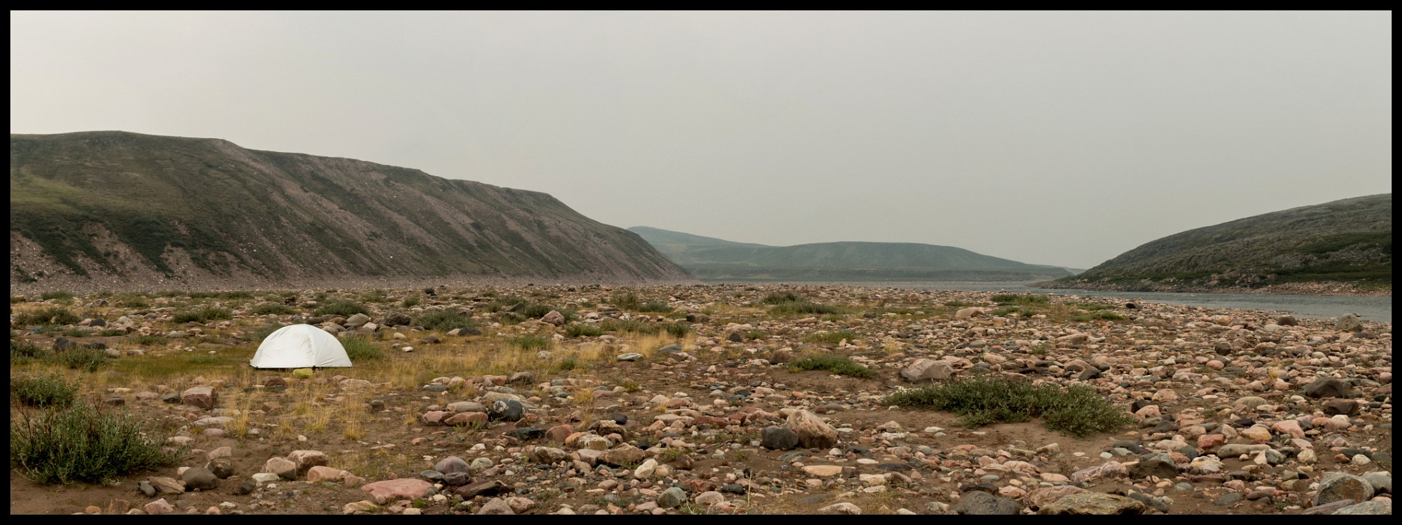 At the confluence of Burnside and Mara. The Mara River comming in from the left (behind the esker), the Burnside joining in from the right. And, the only reasonable campsite for quite a while.