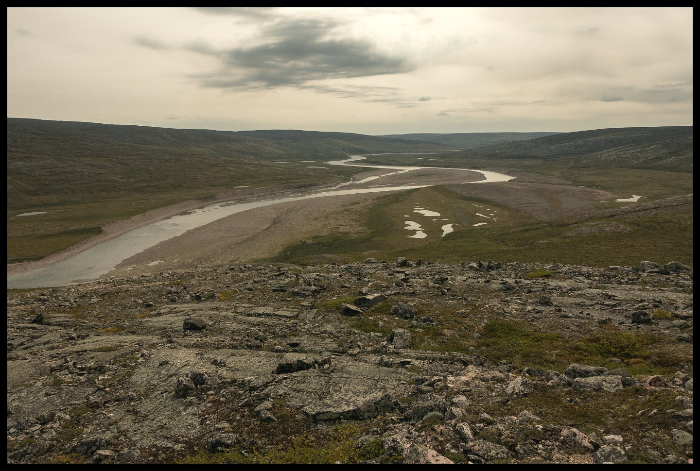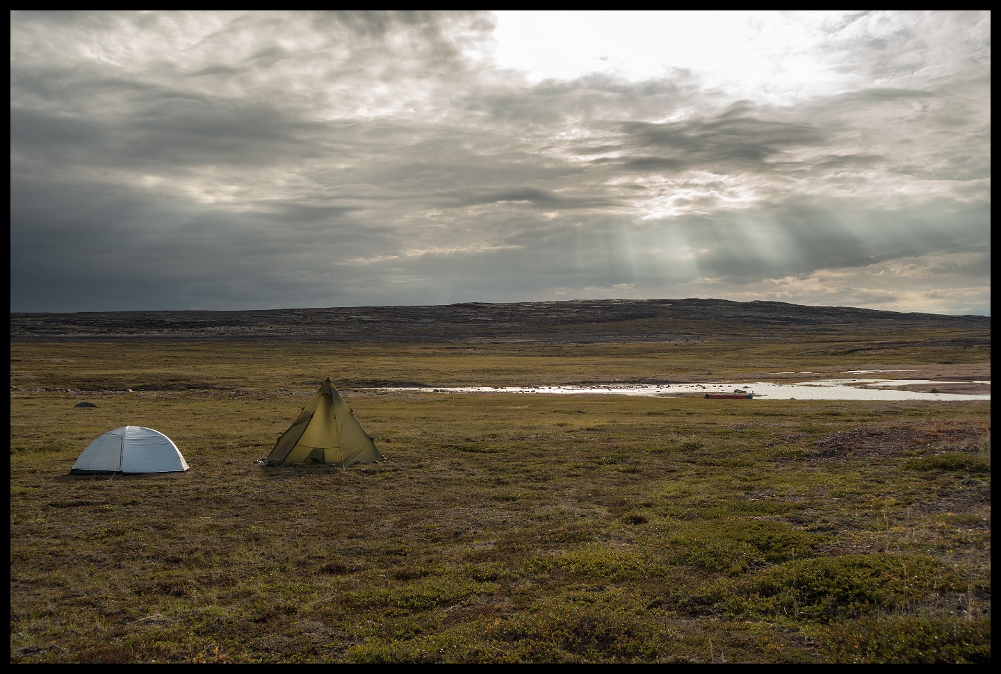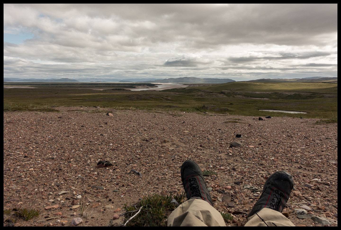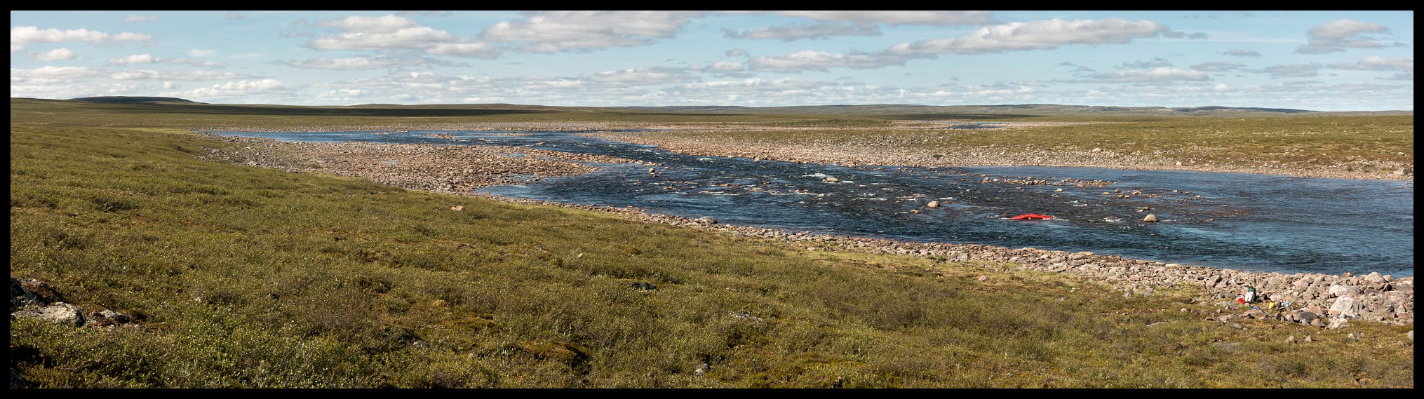 At the confluence of Burnside and Mara. The Mara River comming in from the left (behind the esker), the Burnside joining in from the right. And, the only reasonable campsite for quite a while.