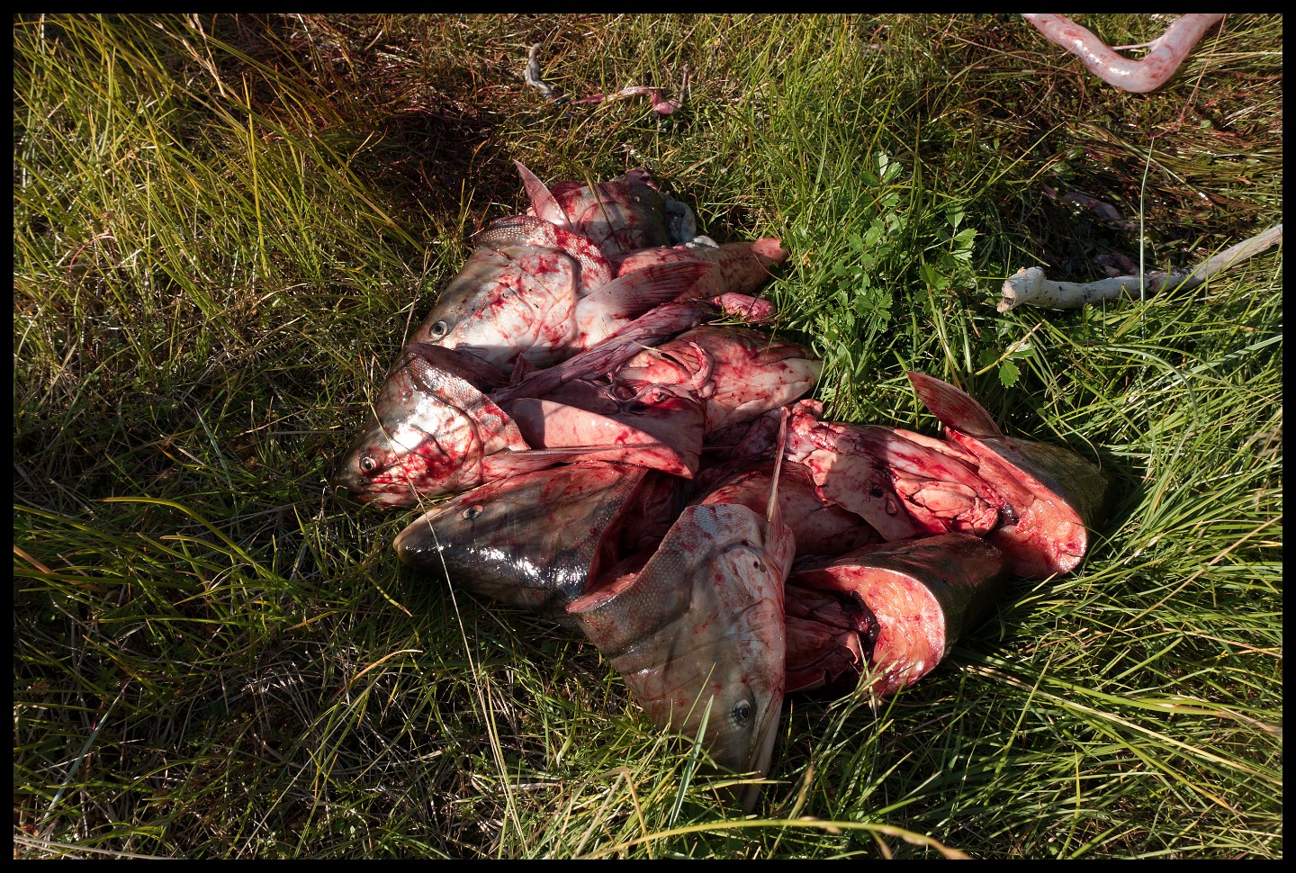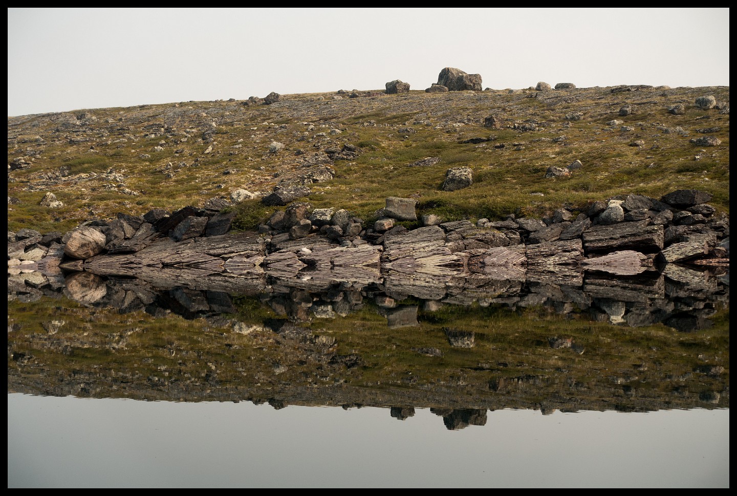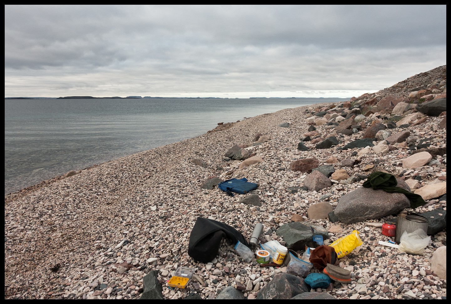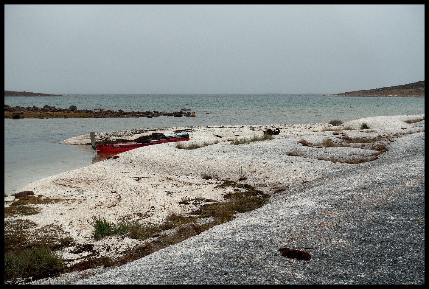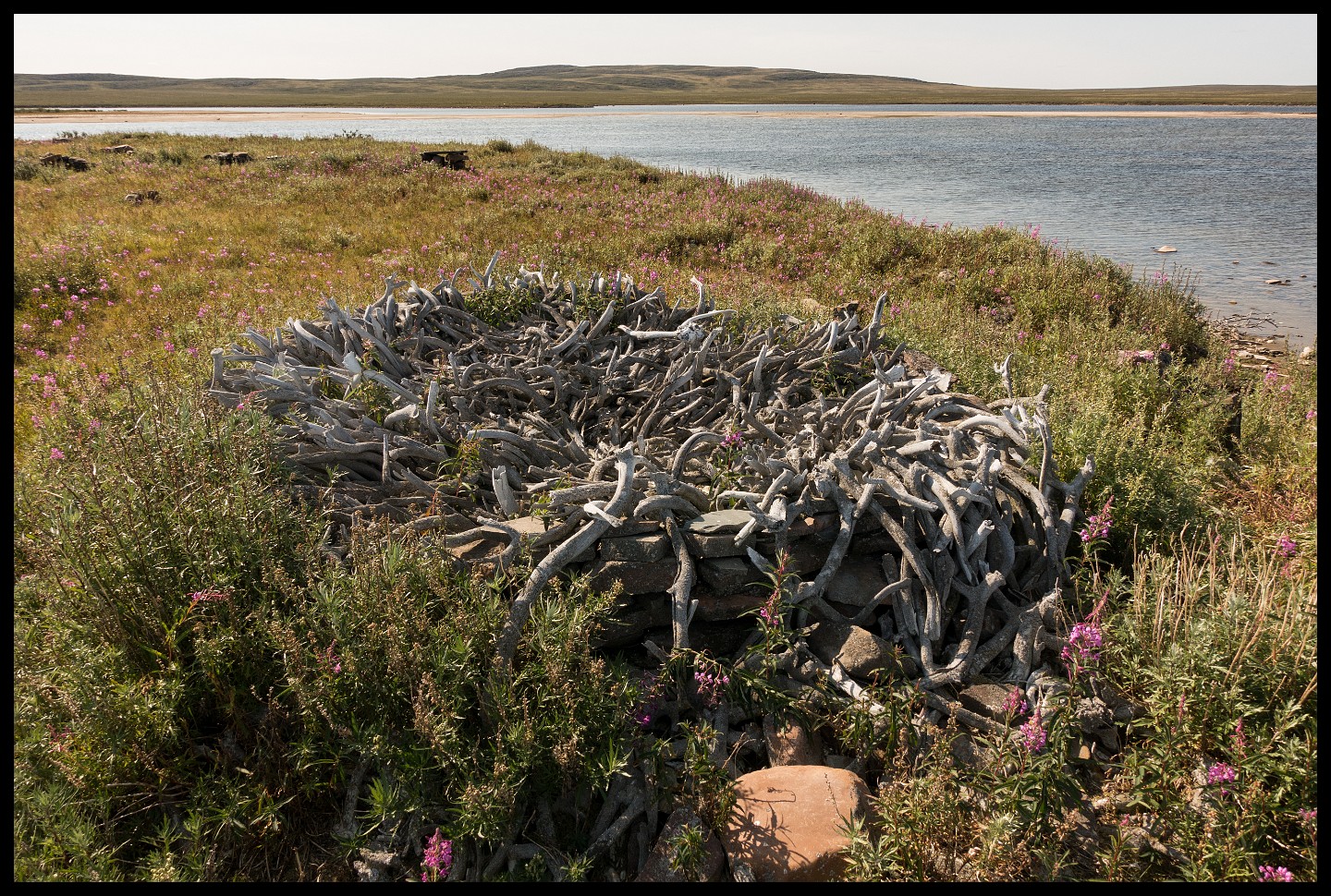 Caribou bone and antler blanket the island and pave the shallows around it.