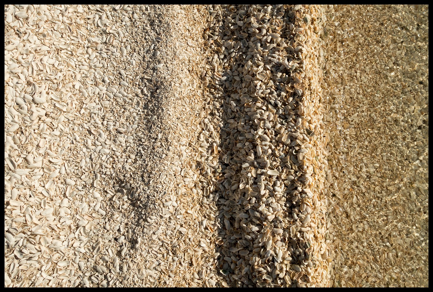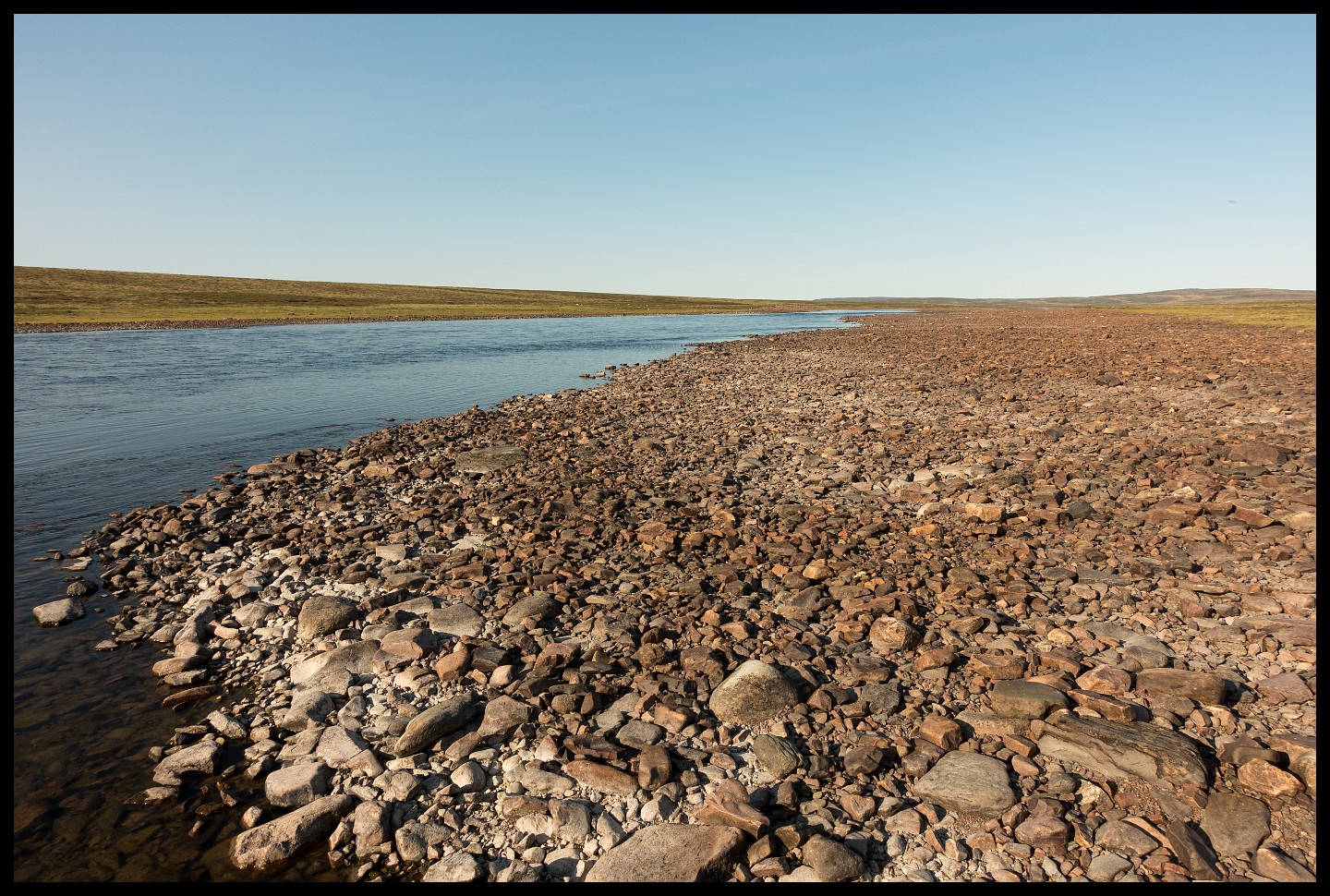 Musselshells - as far as the eye can see, from the time this was the ocean. 'Abandoned shorelines', as they are called by geographers. The land is still rebounding strongly from the last ice age.