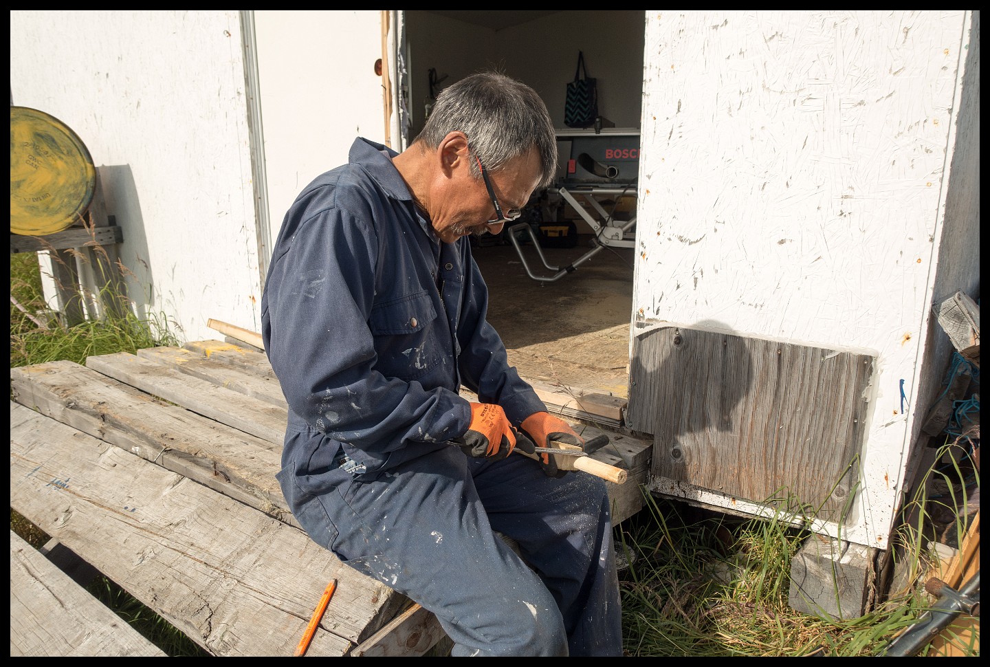 His workshop. Looks a bit jumbled, but I doubt there's much he couldn't put together somehow. The Inuit seem to have a particular ingenuity to make do with what is at their disposal.