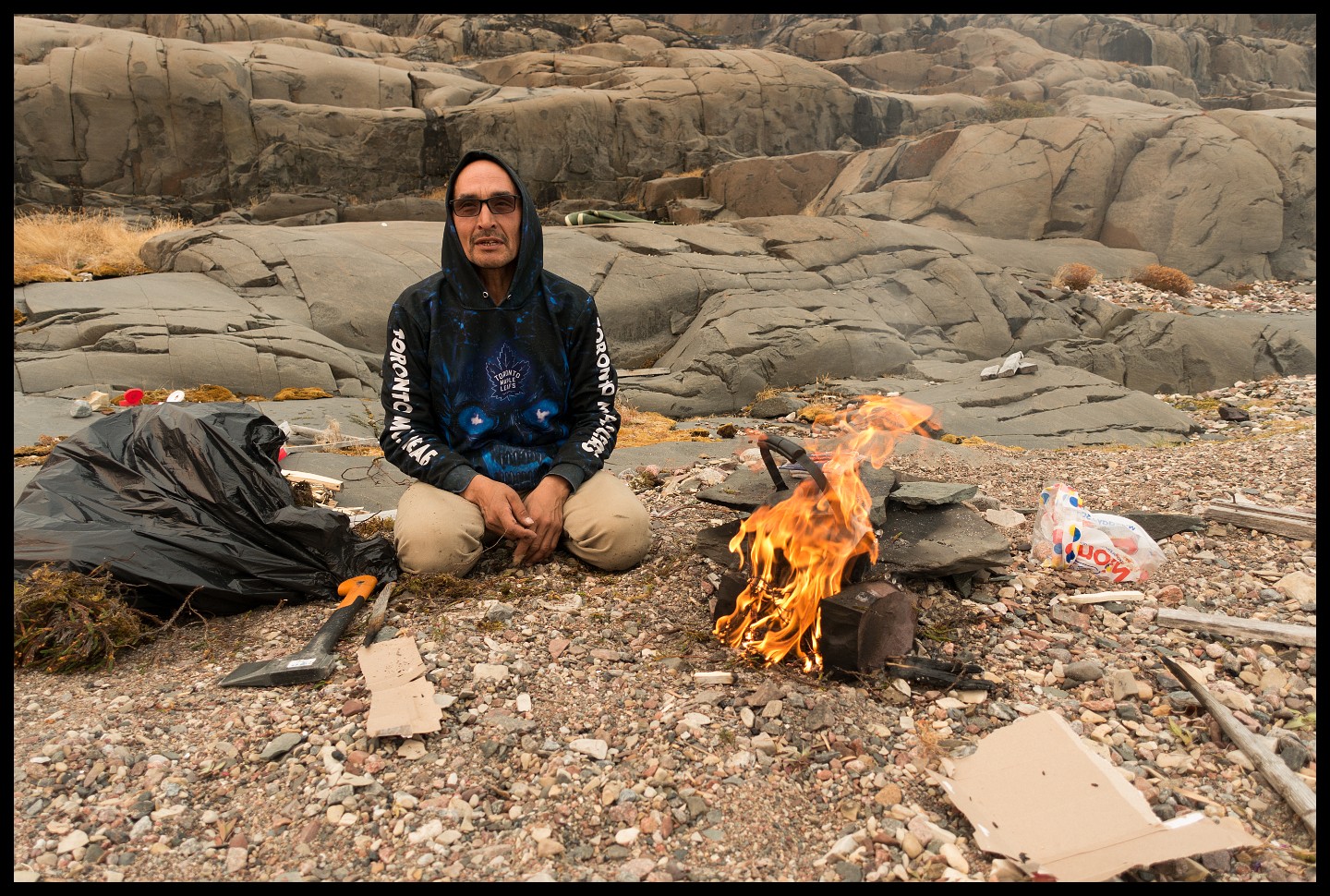 Bobby Klengenberg boiling up some tea, burning arctic heather (Cassiope Tetragona), an important source of fuel in the far north.