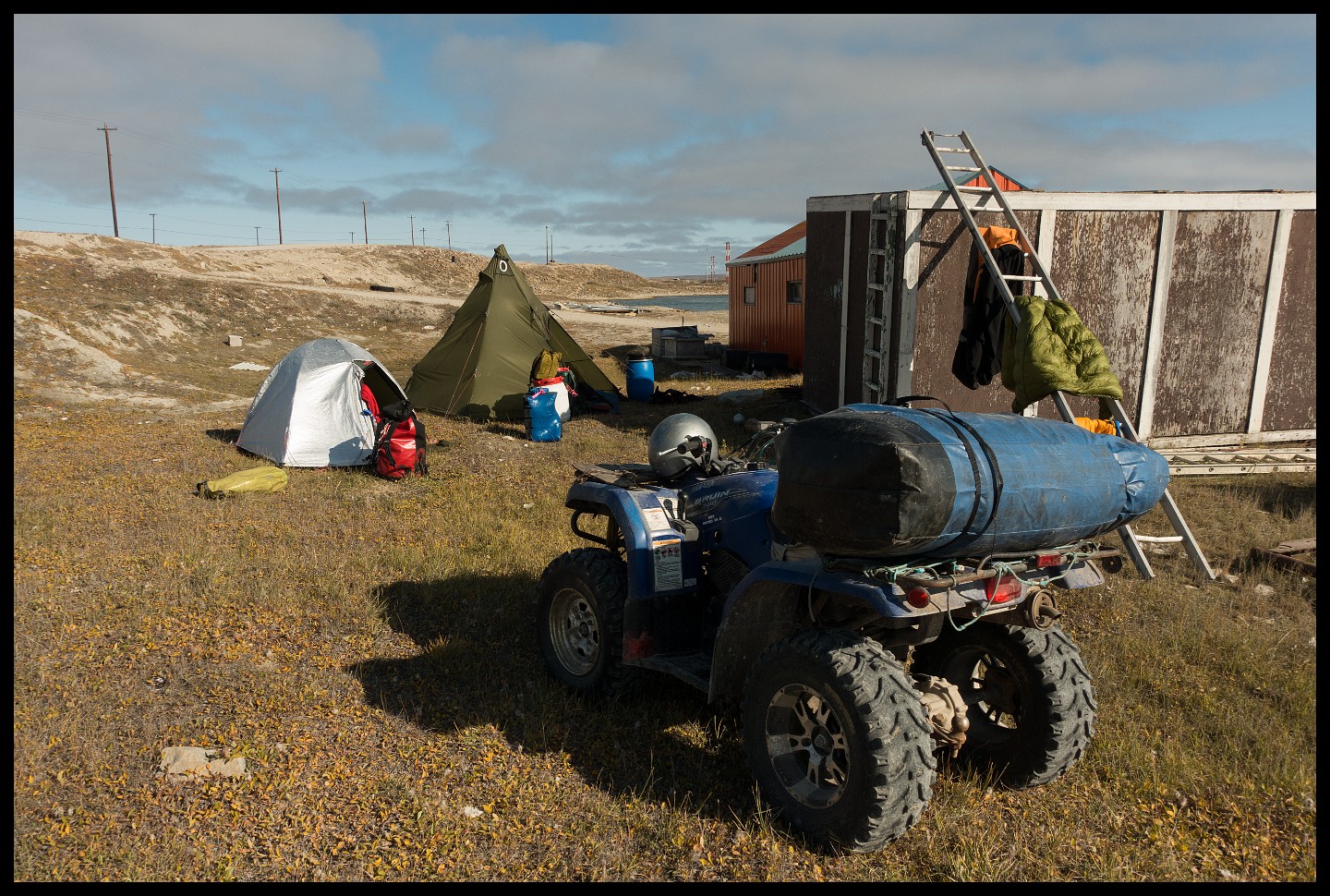 Establishing at the float base in Cambridge Bay. With a rented (50$/day), derelict four-wheeler that ran for about two days before the solenoid gave in.